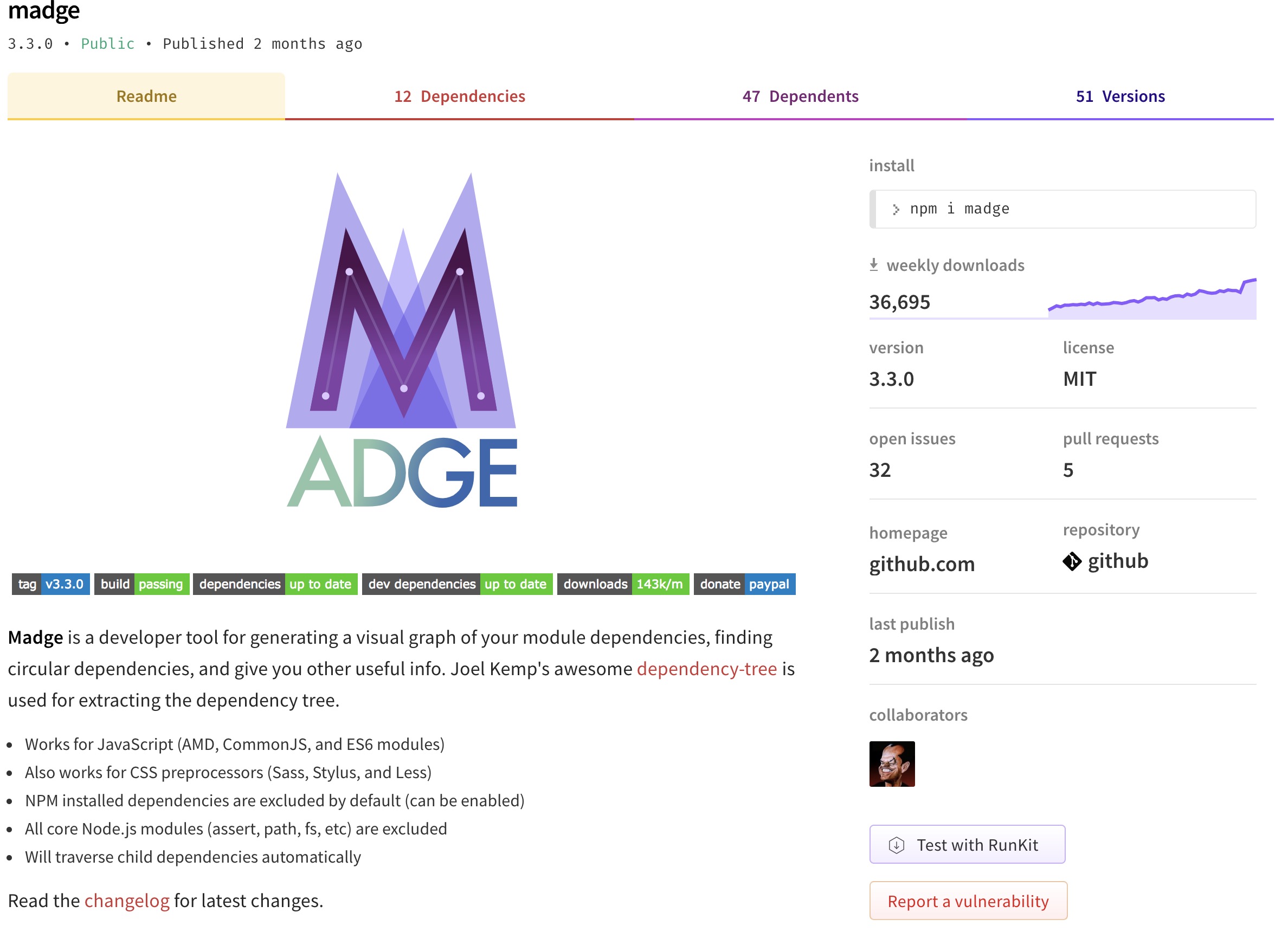 $ npm -g install madge